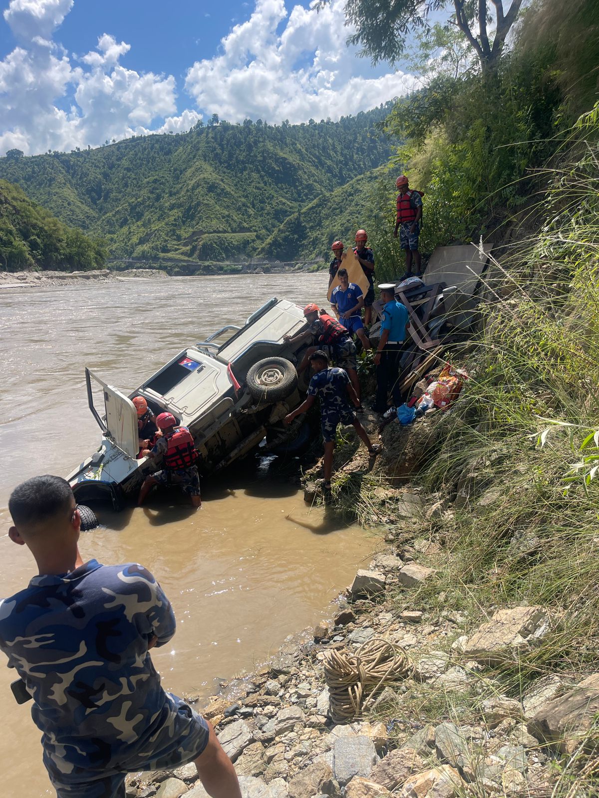 सुनकोशी नदीमा बाेलेराे गाडी खस्दा १३ जना घाइते